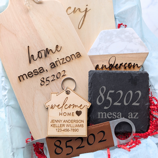 Set of 4 Custom Engraved Marble & Wood Coaster